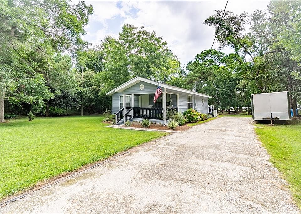 Perfectly located on the way to Dauphin Island and just minutes from Pelican Reef, this adorable cottage combines charm, privacy, and convenience. From the curb appeal and welcoming front porch to the long driveway with plenty of parking, this home invites you in. Inside, the open-concept living area is filled with natural light and flows seamlessly into the dining area and kitchen. The kitchen features granite countertops, a breakfast bar, refinished cabinets, and generous storage space. Additional updates include new flooring, interior doors, and thoughtful design touches throughout. All bedrooms include closets, and the full bathroom offers a convenient tub/shower combo. A dedicated laundry room with overhead cabinets is tucked away in the hallway for added functionality. Step outside to enjoy a peaceful patio overlooking the partially fenced backyard, with plenty of room to relax, garden, or play on the approximate 1-acre lot. A fortified roof, installed just four years ago, provides added value and peace of mind. Situated at the end of the road, this home is a private retreat with easy access to all the beauty and recreation of coastal living. Don’t miss your chance to make it yours!