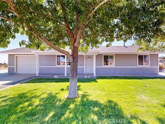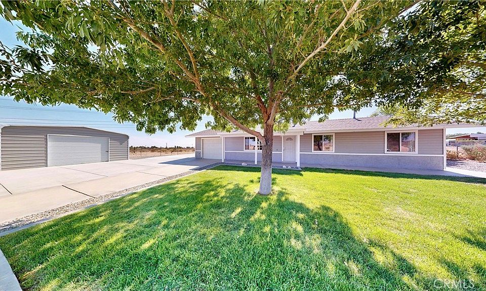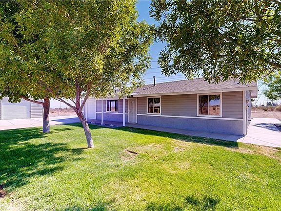 Welcome to 11825 Riggins Road — a freshly updated 3-bedroom, 2-bath home on 2.29 acres, blending modern style with rural charm. Recently painted in a crisp 2025 gray-and-white palette, this home features a spacious living room with a cozy wood stove tucked in the corner, a galley kitchen with ample cabinetry, and a dining area with sliding glass doors opening to the outdoors. Down the hall, you’ll find a well-appointed hallway bathroom, two front-facing bedrooms, and a private master suite at the back of the home with its own bathroom. Outside, enjoy a newly installed detached metal garage, expansive concrete areas for easy parking, and a lush front lawn framed by mature trees in both the front and back yards. With open desert views and thoughtful upgrades and fenced, this property is ready for comfortable country living.