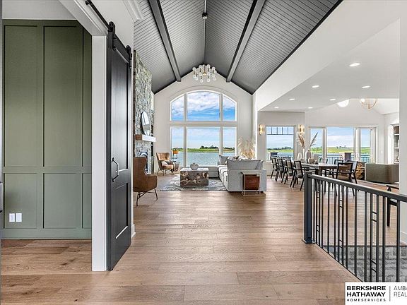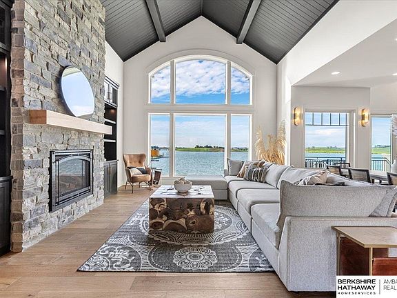 Premier ranch home with incredible views on half acre! Step inside the double door and be greeted with vaulted ceilings & lake views like you have have never seen. A wall of windows throughout the main level with 10 ft plus ceilings. Large space for dining and entertaining with monogram appliances, custom cabinets and dreamy pantry. Primary suite has heated bathroom floors, true steam shower, his and her closets plus private laundry system. You will never want to leave the 4-seasons room w own fireplace to relax with morning coffee or evening wine. 2nd bedroom with own en-suite on main level! Lower level includes 3 bedrooms each with bathroom, dedicated sauna & amazing wetbar with wine storage, 2nd laundry & future pool bathroom. Hollowware under garage. Outside find paver patio with fire pit, landscape zoned drip system, double boat dock included. New roof, windows, siding, paint, flooring, lighting & much more. Dual HVAC zoned. Incredible landscaping and located in private culdesac.