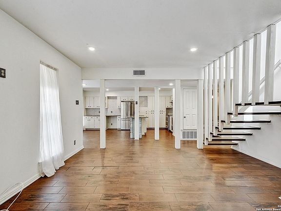 this condo has master down stairs offering privacy, kitchen has granite countertops, sleek stainless-steel appliances and living area has brick fire place. Upstairs, you will find two additional well-appointed bedrooms. This property includes a rear entry 2-car garage with opener. Located on a corner lot in beautiful Harmony Hills subdivision between San Pedro and Blanco rd.