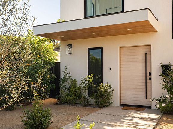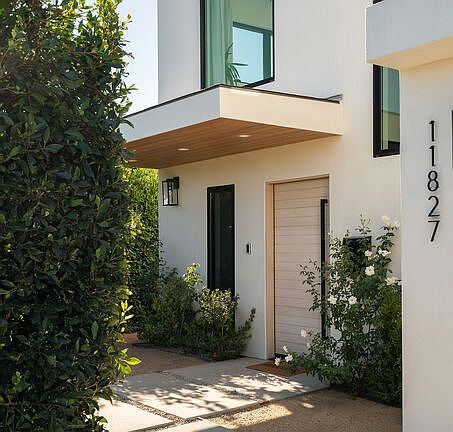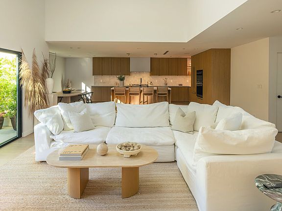 Welcome to a modern sanctuary created and built as a personal residence by a husband and wife team, she an interior designer and he a fashion producer. Every aspect of this immaculate ground-up home was professionally designed with purpose, merging craftsmanship, light, and calm in perfect balance. The kitchen's bountiful custom white-oak cabinetry anchors the room with clean geometry, complemented by handmade Zellige tile that add texture and warmth. Natural light moves gracefully through 16-foot vaulted ceilings, revealing a palette of soft Roman clay and warm wood. The main living space opens effortlessly to the lush backyard with mature landscaping, where indoor and outdoor living blend seamlessly. The open concept flow feels intuitive, with spaces that invite gathering and quiet in equal measure. Throughout the home, thoughtful details like Visual Comfort lighting and subtle stone accents create an atmosphere that feels elevated yet understated. The powder room's Calacatta Viola marble sink and custom wood stair treads and risers bring a sense of craftsmanship to the home's vertical movement. A detached guest suite with its own kitchen and bath offers flexibility for guests, a live-in nanny, an in-law suite, creative use, or additional income, maintaining privacy without disrupting the architectural harmony of the main residence. The private backyard and spacious roof deck lend themselves to endless outdoor dining and entertaining opportunities. Every detail has been thoughtfully curated, resulting in an unparalleled functional and refined design. Seldom does a home that embodies this emotion and eminence become available. Whether hosting a dinner party or simply lounging with family and friends, this bespoke home is the perfect place to call home. Set on one of the most convenient and neighborly streets in West Los Angeles, this home offers easy access to the beach and all West LA has to offer, yet sits quietly on a wide, no-through street where kids still learn to ride bikes. A residence of light, material, and intention designed to not only impress, but be lived in.