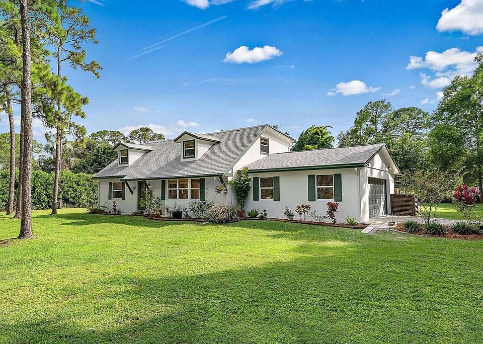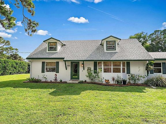 Experience peaceful Florida living on 1.25 private acres in this beautifully updated home that blends modern comfort with lush outdoor spaces. Inside, you'll find a completely refreshed interior with new tile flooring, fresh paint, updated wall textures, recessed lighting, upgraded electrical, and modern ceiling fans. The kitchen features custom cabinetry, new appliances, and tile floors that flow seamlessly into the open dining and living areas. Bedrooms include soft new carpeting for a cozy touch. Built for comfort and peace of mind, the home offers impact windows throughout, a new impact front door, CBS construction on the first floor with hardie-board siding above, and a new sliding door with hurricane shutters. The garage door includes tie-downs for added storm protection. Step outside to your own backyard oasis featuring a sparkling pool with paver deck, hot tub/spa with a refreshing cold plunge setting, tropical landscaping, and privacy clusias. The property includes a variety of fruit trees guava, avocado, banana, lemon, lime, and orange as well as raised garden beds with irrigation for your own homegrown produce. A new driveway culvert, new gutters, and new landscaping complete the property's inviting curb appeal. This home offers the perfect combination of space, style, and serenity ideal for anyone seeking a move-in-ready retreat that feels like a private getaway while still being close to modern conveniences.