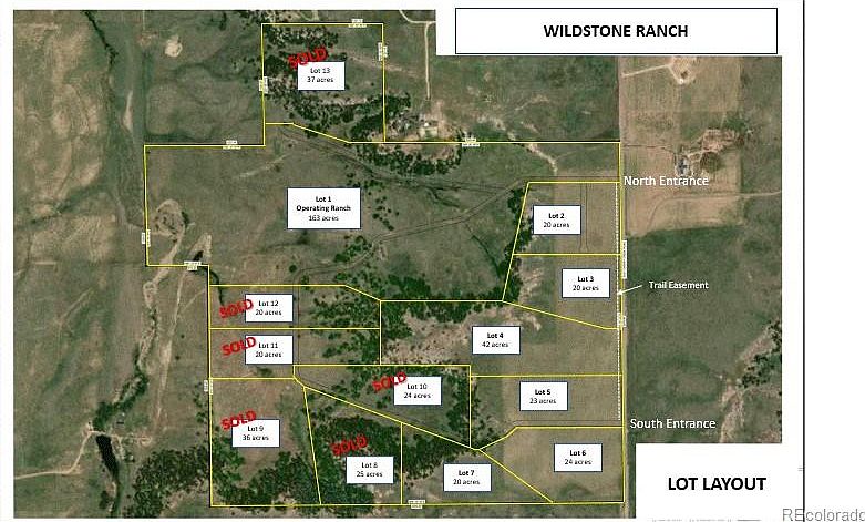 The new community at Wildstone Ranch is one of the most unique properties along the Colorado front range, offering all the natural beauty of the Mountain West and the privacy of large acreage with the convenience of short commutes. Only 12 exclusive ranchette lots were created adjacent to the 163-acre operating ranch which hosts traditional agricultural activities, along with recreational, equestrian, and hospitality programs. Entry into the Wildstone Ranch will include gated access and all lots are serviced by a paved private road. Agricultural tax status is current and easily maintained. An extensive trail system will run throughout the 480-acre development and all properties have wide panoramic mountain views, pine and gambel trees, and ample water rights and meadows to support horse or livestock grazing. Tons of wildlife - mule deer, antelope, elk, and turkey. High-speed fiber optic internet has been installed. Located midway between Colorado Springs and Denver, and only 20 minutes from Monument, Castle Rock, and Parker.
