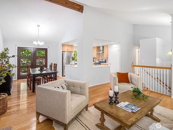 Experience the best of both worlds—privacy and space with city convenience—in this beautifully updated Kirkland Highlands home. Set on an oversized lot beneath soaring evergreens, it offers 3 bedrooms on one level, a spacious primary suite, vaulted ceilings, and an open-concept living area with remodeled kitchen and wood-burning fireplace. The lower level adds a large family room, ¾ bath, and 4th bedroom potential. French doors open to a rebuilt Ipe deck and park-like yard. With updated systems, triple-pane windows, fresh paint, new carpet, and an oversized 2-car garage, this home is move-in ready and minutes to Google, parks, trails, I-405, and top-rated schools, like Peter Kirk Elementary.