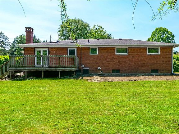 Welcome to this charming brick and cedar-sided ranch nestled on a picturesque 1.14-acre lot. Surrounded by mature trees and partially wooded for added privacy, this serene setting offers the perfect blend of nature and comfort. Three spacious bedrooms, a full bath and additional shower in the lower level are all thoughtfully laid out for easy living. The heart of the home is the oversized kitchen featuring a cozy wood-burning fireplace, perfect for gathering with loved ones or enjoying a quiet morning with coffee. The large living room, also adorned with a beautiful wood-burning fireplace, invites relaxation and conversation. Enjoy the convenience of a 2-car attached garage, a full partially finished basement with endless potential, and a concrete drive that adds both function and curb appeal. Step out back to your peaceful deck, where you can entertain, grill, or simply enjoy the sights and sounds of nature. Located in a high demand area that combines tranquility with easy access to everyday essentials, outdoor recreation and highways, this home offers the best of both worlds—comfort and convenience. Bring your personal flair and vision to refresh this rustic retreat and truly make it your own. Homes like this—with space, privacy, and timeless character—are rare. Schedule your private showing today!