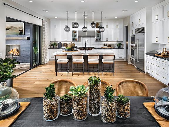 Luxe design. The Harbor's inviting covered entry reveals the stunning two-story foyer, opening to the soaring great room, two-story casual dining area, and views of the desirable luxury outdoor living space beyond. The well-equipped gourmet kitchen is highlighted by a large center island with breakfast bar, plenty of counter and cabinet space, and gigantic walk-in pantry. The serene primary bedroom suite is enhanced by a palatial walk-in closet and deluxe primary bath with dual-sink vanity, large soaking tub, luxe shower, linen storage, and private water closet. Secondary bedrooms overlook an enormous loft, and feature generous closets and private baths. Additional highlights include a desirable first floor bedroom suite with walk-in closet and private bath, versatile office off the foyer, convenient powder room and drop zone, centrally located laundry, and additional storage.