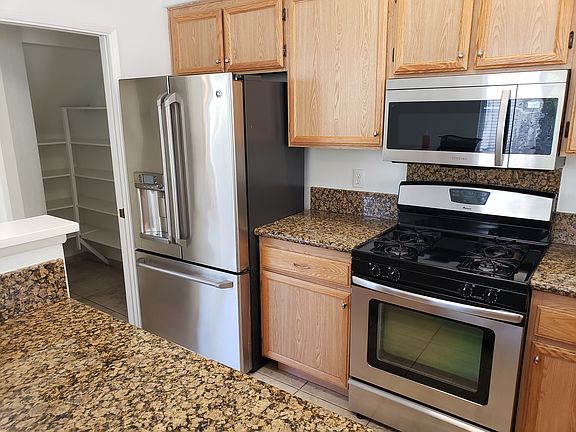 End-unit Condominium overlooking green belt with all appliances. Attached 1 car garage, large patio and fenced yard. Upgraded kitchen with granite countertop, stainless steel appliances and walk in pantry. Vaulted ceiling in living room. Fireplace. Two upstairs bedrooms each with a private bath plus 1/2 bath downstairs. Master bedroom has a large closet and a granite vanity in the bathroom. One additional on-property assigned parking space. Lots of guest parking (guest permit required). Washer/Dryer located in garage. Close to schools, parks, shopping and freeway. Not accepting pets, water filled furniture or aquariums larger than 10 gallons at this time. Offering Month-to-Month agreement. No smoking. Tenant responsible for gas, electric and water utilities. Owner pays gardener.