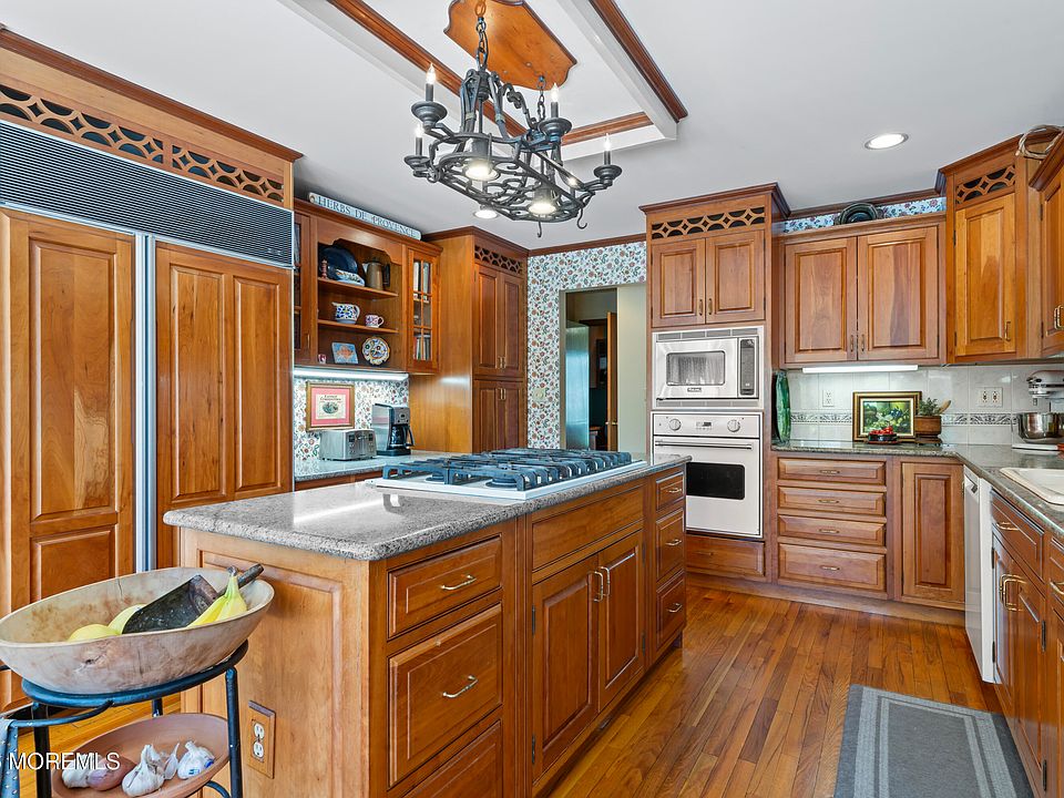 Discover timeless elegance and superior craftsmanship in this custom-built, four-bedroom, three-and-a-half-bath estate, offering over 3,800 square feet of beautifully finished living space. Perfectly situated on a quiet cul-de-sac and set on a landscaped one-acre lot, this home blends classic design with modern comfort. Built by the original owner with meticulous attention to detail, it welcomes you with a grand entrance featuring a solid mahogany front door and a marble-accented foyer with soaring 26-foot (approx.) ceilings that create an unforgettable first impression. Inside, you'll find rich hardwood flooring, custom inlays, and recessed lighting throughout. The formal living room impresses with 18-foot ceilings and a natural stone fireplace set on its own foundation, while the elegant dining room is framed by French doors and highlighted by 9-foot ceilings. The gourmet kitchen is a standout with English-style, double-beaded inset cherry cabinetry, stunning Blue Azure granite countertops, Viking appliances, a Sub-Zero refrigerator, and a Bosch 800 Series dishwasher perfect for entertaining or everyday living. The 13-course basement was expertly constructed using a combination of 8-inch and 12-inch block, with the 12-inch block specifically engineered to support the weight of the home's natural brick exterior. This level offers a versatile space ideal for additional living, recreation, or storage. It also includes dual staircases one from the main level and one from the garage and a concrete-floored crawl space for added storage. The exterior of the home showcases distinctive English Bond brickwork, durable cementitious stucco, and custom details including an outdoor fireplace designed to resemble a wine bottle. A decorative brick entry leads to the fenced backyard oasis, complete with a spacious patio and a 10-foot-deep in-ground pool with a new pump. Whether you're enjoying the generous living areas, relaxing in one of the spacious bedrooms, or taking in the peaceful outdoor setting, this one-of-a-kind residence offers luxury, privacy, and thoughtful design throughout. Don't miss this rare opportunity to own a truly exceptional home in a desirable location.