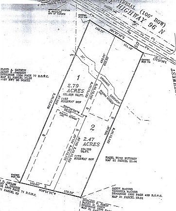 ZONED RS-15! SEWER, WATER, ELECTRICITY, NATURAL GAS AND HIGH SPEED INTERNET AVAILABLE ALONG ROAD! Parcels are aavailable to divide into 15,000 SF lots. Septic Permit years ago for a 4 bedroom. Easy to view. SURVEYED! Ready for you to start your new home or homes! Could possibly be zoned Commercial if you presented to commission. Fairview is growing and you need your own place or business before acreages are gone! You can park along road by the mailbox and there is an opening into the property. This property consists of the following addresses: 1183 and 1179 Highway 96 N
