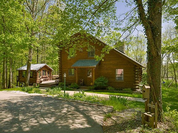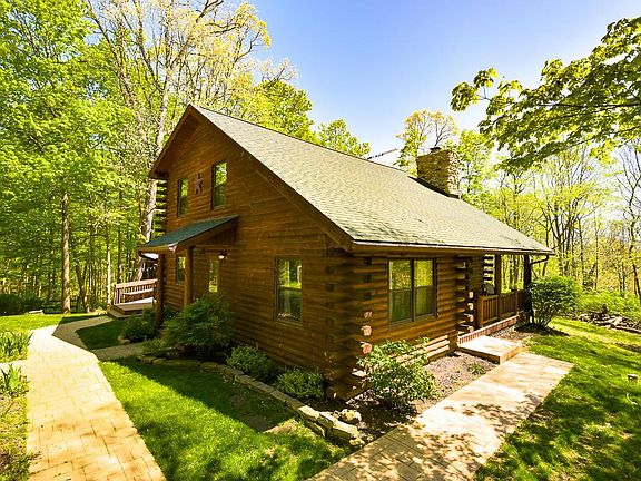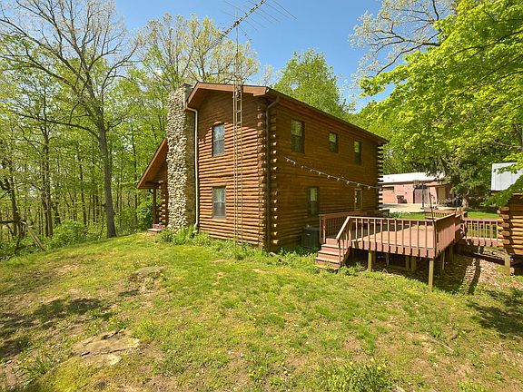 Stunning Log Home - total seclusion with almost 19 Wooded Acres! This recreational property has so much to offer! The log home features 3 bedrooms and 2 full baths, a floor to ceiling stone wood burning fire place, private dining room and full basement. You can enjoy the out doors on the large tiered deck - enjoy summer cook outs in the screened in cabin attached! There is a 3 car/plus garage workshop that is perfect for all your outdoor recreational items. Current owner had carved in miles of trails deep in the woods. Paperwork has been filed for CAUV and tree conservation. Call today for all the details and a private tour of this awesome proper