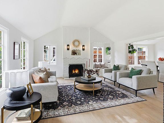 Tucked along a wide, tree-lined street in the coveted Hanchett Park neighborhood, this beautifully remodeled home blends timeless elegance with modern family living. The main house features 3 bedrooms, 2 full baths, and 1,866 sq. ft. of thoughtfully designed space filled with charm and light. Soaring vaulted ceilings welcome you into a cozy living room with fireplace and reading alcove. The breakfast dinette leads to a stunning kitchen with bold black-and-white tile floors, white cabinetry, dark green-veined granite counters, stainless appliances, gas range, Lazy Susan cabinet, and RO drinking system. Spacious bedrooms, formal dining, and a versatile entertainment area make daily life effortless. A detached 1-bed, 1-bath, 559 sq. ft. cottage with full kitchen and living room offers the perfect retreat for guests, family, or potential rental income. Lush, professionally designed gardens feature dining patios, a fire pit, and fruit trees. With new systems, upgrades, and extensive renovations, this turn-key home delivers comfort, character, and convenience near Santana Row, SAP Center, and major commute routes.