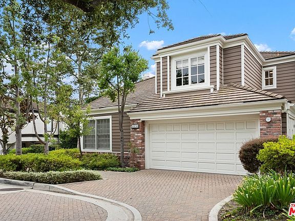 Rarely available, this beautiful Traditional home is in the prestigious and highly sought-after Guard-Gated community of BEL AIR CREST. Situated on a quiet tree lined cul-de-sac street, the home is the multilevel 'Getty' floorplan, offering separation of entertaining space and the primary bedroom plus family bedrooms are upstairs. Upon entering the front door, you are welcomed into the ample entry with real oak floors, walk-in closet, and large step-down living room. The living room offers an elegant 10'+ ceiling, recessed accent lighting, wall of windows & French doors, and handsome gas fireplace. Adjacent to the living room is the formal dining room French doors leading to the spacious yard could be converted to a full length outdoor entertaining space is available for al fresco dining and lounging. The Chef's kitchen features tremendous storage with loads of cabinets including an entire wall of glass front cabinets for displaying beautiful China or objet d'art. Additional features include top of the line appliances, 6-burner gas cooktop, double wall oven, Sub-Zero refrigerator plus abundant counterspace. The adjacent breakfast room includes additional cabinets and counter for extra storage, and French doors that lead to the west facing patio with numerous trees and sweeping views across the canyon to Mountain Gate. Up a few stairs to the middle floor den with direct garage access, large windows, extra tall ceilings & wet bar. This floorplan offers all three bedrooms upstairs, as well as two bathrooms up and a powder on the main floor. Entering the extra-large primary bedroom through the double doors, the room offers four large windows for abundant sunshine, an oversized walk-in closet and ensuite bathroom with luxurious tub and separate shower, dual vanity, make-up area, and private toilet room. Ascend a couple additional steps to the two additional family bedrooms with shared bathroom including dual vanity and separate tub/shower/toilet room. This elegant home is move-in ready with a few minor updates or could be fully remolded to the buyer's specific taste. Being one of the larger lots at Bel Air Crest, the elegant well-manicured garden/yard could be updated for a future in-ground hot tub or remodeled to be an extra-large patio space. The oversized 2-car garage with abundant storage completes this beautiful home. The Bel Air Crest community amenities include a heated swimmer's pool, spa, recently remodeled state of the art gym, dog park, community center with meeting space, tennis courts, basketball courts, children's play area, putting green, and on-site management. This 24-hour Guard-Gated community offers a secure paradise for its residents. The home is situated in a lushly landscaped hillside community and is convenient to both the Westside and the Valley, as well as the 405 freeway, shopping, fine dining, beaches and more. All buyers and agents must be preregistered with the security gate in advance of showing appointments.
