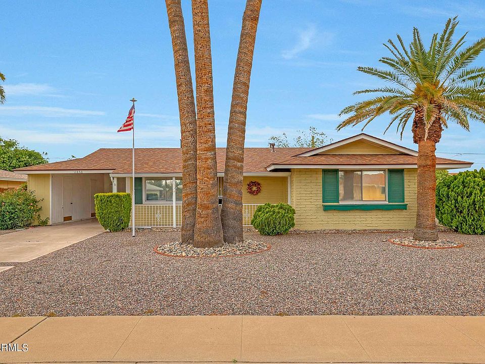 Ideal Yorktown Plan 3 Model Home In Sun City. 2 Bedrooms, Both Have Walk In Closets. 1 Bathroom With A Tub. Arizona Room Has Been Added For Additional Square Feet And A Great Space To Relax And Read A Book Or Enjoy A Cup Of Coffee. The Back Yard Is Partially Fenced And Has Orange And Grapefruit Trees. The Roof And Water Heater Are Recently Updated. Please Stop By And See This House.