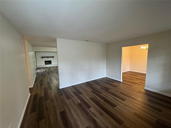 This spacious residence offers four bedrooms, two full bathrooms, and one-half bath. You will enjoy relaxing on the front-covered porch. The property includes a formal living room with expansive windows. The formal dining area features a bay window with views of the front yard. The open-concept kitchen, breakfast nook, and family room create a welcoming environment. The kitchen boasts freshly painted cabinetry, butcher block countertops, a stainless-steel dishwasher, electric range and hood, a breakfast bar, and ample pantry space. The breakfast nook is enhanced by floor-to-ceiling built-in shelving/cabinetry. The large family room includes a brick wood-burning fireplace with a mantel, as well as French doors that lead to the backyard. The hallway bathroom has double vanity sinks with granite countertops plus extra storage. The split bedroom layout places the main bedroom on one side offering a full bath with combination shower/tub, a standard closet, and a walk-in closet. Three secondary bedrooms are located on the opposite side of the home; one of these bedrooms includes a half bath. Additional amenities include a laundry room with utility sink, new vinyl plank flooring throughout the home and large back yard.