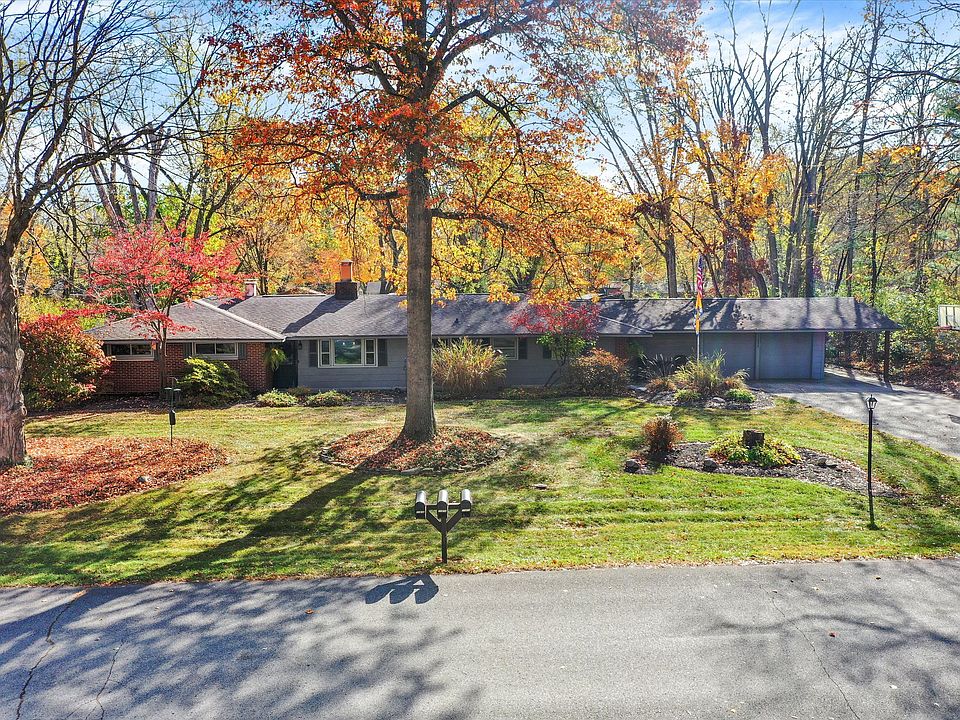 Welcome to this charming 3-bedroom, 2-bath Carmel Ranch home offering comfortable living in a convenient location. The living and dining areas share a beautiful see-through wood-burning fireplace, creating a warm and inviting atmosphere. The large eat-in kitchen is perfect for casual meals, and sliding doors open to a bright sunroom ideal for relaxing or entertaining. The spacious family room provides plenty of room for gatherings, with a nearby laundry room offering ample storage space. The nicely sized primary bedroom includes an ensuite bath, while two additional bedrooms and a full bath provide flexibility for family or guests. Enjoy the large wooded backyard, complete with a fence, fire pit, and a newer storage barn built in 2018. The fully fenced yard is great for dogs, and the screened-in patio offers an outstanding outdoor retreat. Located in the desirable Carmel-Clay school district, this home is within walking distance of local parks and close to shopping and amenities. With updated bathrooms, no HOA, and a peaceful setting, this property blends comfort, convenience, and charm.