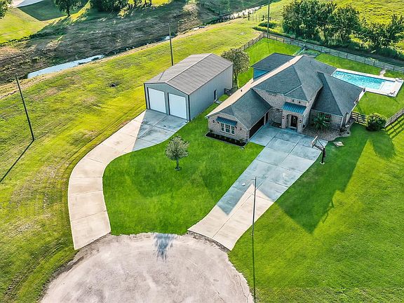 Immaculate stunning custom home on an oversized cul-de-sac lot in Deer Creek Estates, less than 2 miles from Needville ISD schools. Interior features include porcelain hardwood floors, abundant natural light, and open living areas with great views. Gourmet kitchen with granite counters, lighted cabinets, stainless steel appliances, and a large breakfast bar. Owner’s suite offers a sitting area, dual sinks, free-standing tub, custom walk-in shower, and a spacious closet with built-ins. Upstairs includes a game and media room, study with walk-in attic storage, and secondary bedrooms each with built-in desks, walk-in closets, and a Jack and Jill bath. Backyard highlights include a new oversized pool, recent fencing, and a 30’ x 50’ x 16’ shop with two 14’ electric doors ideal for storage, projects, RV, and recreational vehicles.