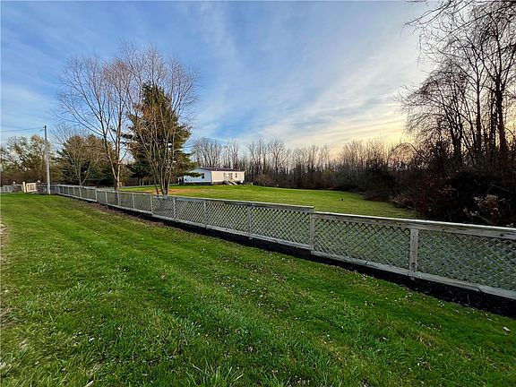 OUTSTANDING COUNTRY LOCATION and minutes to PORT BAY & LAKE ONTARIO! This 3 BEDROOM, 2 BATH 1996 doublewide RANCH home is situated on approximately 6 acres. Home has cathedral ceilings, OPEN FLOOR PLAN, NEW KITCHEN IN 2024 and all recent stainless appliances included. The setting is super nice with a trail thru the woods to the winding creek. 3 car detached garage has many uses & paved driveway has ample parking. Forced air furnace and CENTRAL AIR are approximately 7 years old. Drilled well has excellent water supply. Adjoining East BUILDING LOT (6749 WEST PORT BAY RD MLS#R1652399- 2 acres) is also available to purchase if additional acreage is desired. DELAYED NEGOTIATIONS UNTIL MONDAY, 12/8 10 AM.