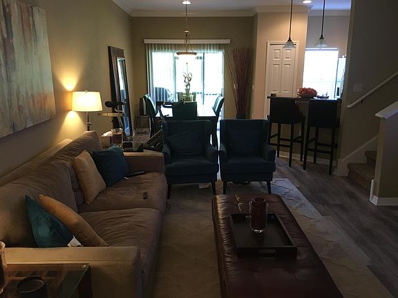 Welcome to RESORT STYLE LIVING. 11835 Castine St. is a 3 bedroom, 2.5 bathrooms, with a 1 car garage in the desirable gated community of Waters Edge. Upon entering your FRESHLY PAINTED new home, you will step onto the LUXURY VINYL PLANK FLOORING and your eyes drawn to the bright and openness of the first floor outlined with crown molding. In the kitchen, the bright recessed lighting spotlights the 42" Upper Spiced Maple cabinets, wine rack, tile backsplash, breakfast bar, and the kitchen is topped off with a pantry to store all of your kitchen needs. Finishing out the first floor you will notice a bright and airy screened-in lanai off of the dining room and a half bath next to the garage for easy access. As you proceed upstairs on the NEW CARPET you will first notice a built-in desk and laundry room equipped with a washer and dryer. In the master bedroom you can lay in bed and overlook the conversation area or relax in the large garden tub located in your en suite bathroom. Not to forget about your clothes, your large master closet is just waiting to be filled. Down the hall are the remaining two bedrooms and second full bathroom. Just steps from outside your door you can enjoy the luxury of two community pools, a gym, fishing pier and dock, playgrounds, a basketball court, and a 9,000 sq. ft. clubhouse. First month's rent & 1.5 month security will be due at lease signing. No smoking/criminal history/prior evictions/no pets. Call for your private showing!!