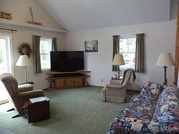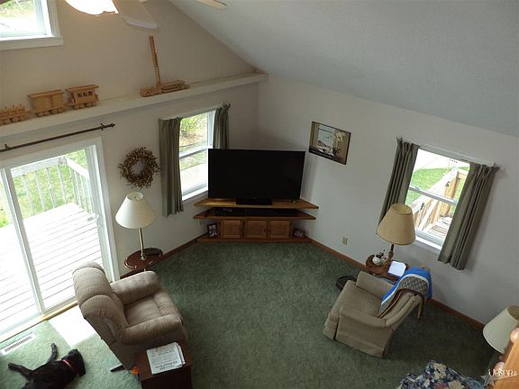STONE LAKE CUTIE ON A DOUBLE LOT WITH BEAUTIFUL VIEWS SITUATED ON THE HIGHEST POINT ON THE LAKE! This home can be a seasonal or year round home with 2 bedrooms on the ML and another possible bedroom in the UL loft area (no closet); open concept with cathedral ceilings; built-in entertainment center; finished walk-out basement with family room, workshop and laundry area; recent updates include; roof in 2001 with 30 yr. warranty, new windows and patio doors in 2012 with exception of LL patio door, furnace in 2013, sump pump 2014; multi-tiered deck; pier and 24' pontoon boat, with newer decking and carpet, included with sale of home.
