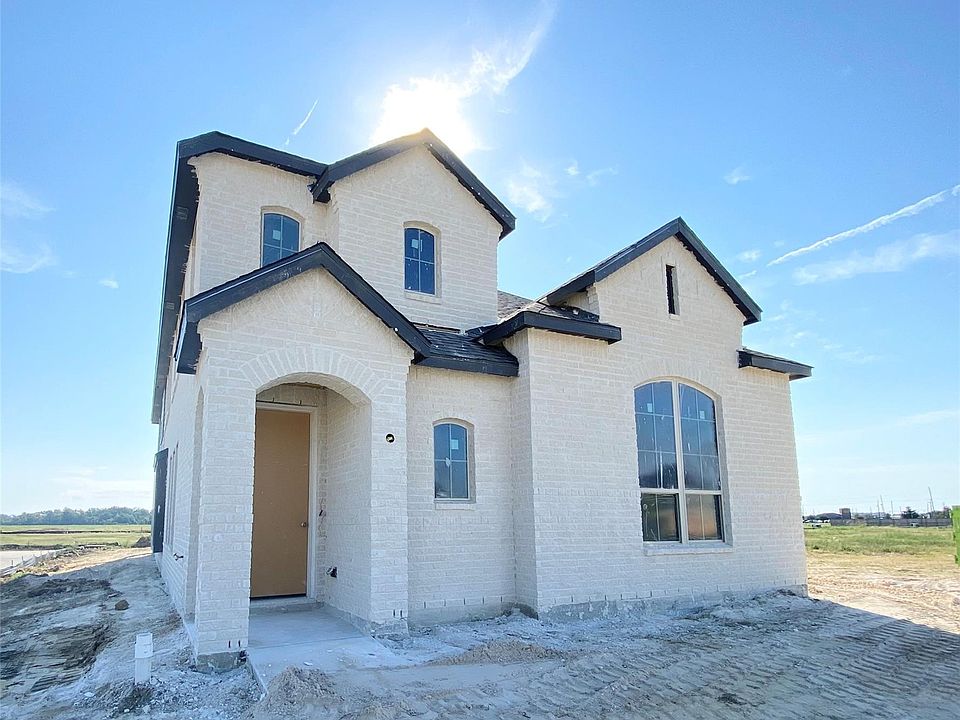 The London is a beautiful, all-brick home with two-story entryway creating a grand entry & the floor to ceiling windows give a bright and airy feel. Kitchen features stunning quartz countertops and island with bar stool seating opens to the dining & family room. Light wood look flooring throughout the main living areas. The kitchen flows into the dining room with a window seat—a great plan for someone who enjoys open space & high ceilings. The loft area with a window seat makes nice use of space upstairs. Spacious primary bedroom features a spa-like bathroom with a beautifully tiled shower. All 5 bedrooms have large walk-in closets. The covered extended outdoor living area is perfect for relaxing and entertaining. 8-foot doors throughout the first floor, tankless water heater system, full sod yard & sprinkler system are also included. Close proximity to top rated schools, dining, shopping, recreation center & golf course! SOME PHOTOS ARE REPRESENTATIVE - HOME UNDER CONSTRUCTION NOW