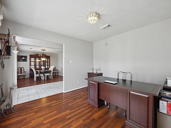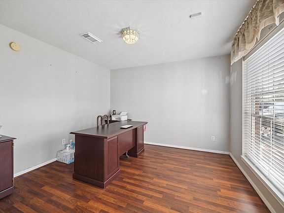 Welcoming fireplaceGas stoveWarm wood laminate flooringFormal dining roomLarge family roomOpen kitchenPrivate study