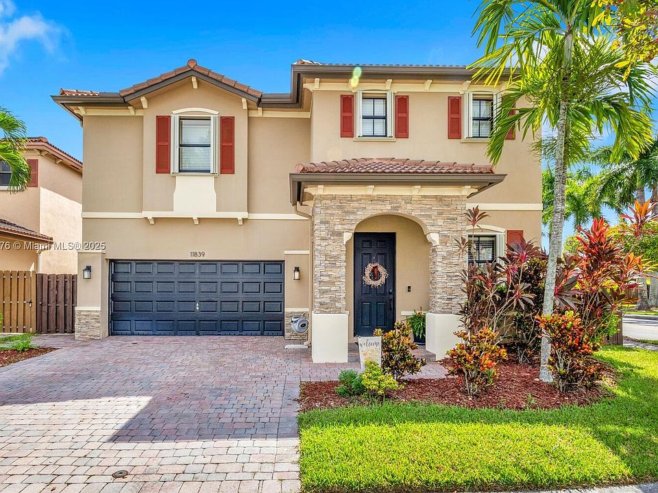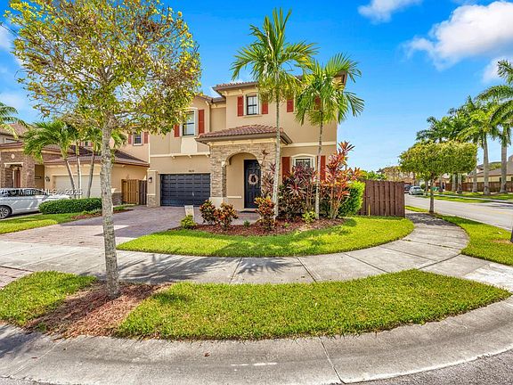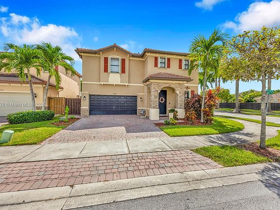 Welcome to Garden Estates! This beautiful corner home features high ceilings, a bright living/dining area, and first-floor bedroom/full bath, perfect for guests. The open-concept kitchen offers hardwood cabinets, granite countertops, and an over-sized walk-in pantry. Upstairs, the spacious primary suite includes a seating area, expansive closet, spa-like bath with soaking tub and new toilet. Three more spacious bedrooms, a third bathroom with double sink/separate shower area, and large laundry room complete the second floor. Upgrades include hurricane shutters, 2 new A/C units (2023), lush landscaping and a sparkling saltwater pool! Your 2-car garage offers ample storage. Low $107/mo HOA provides clubhouse access directly across the street! All that’s left is to move in and make it yours!