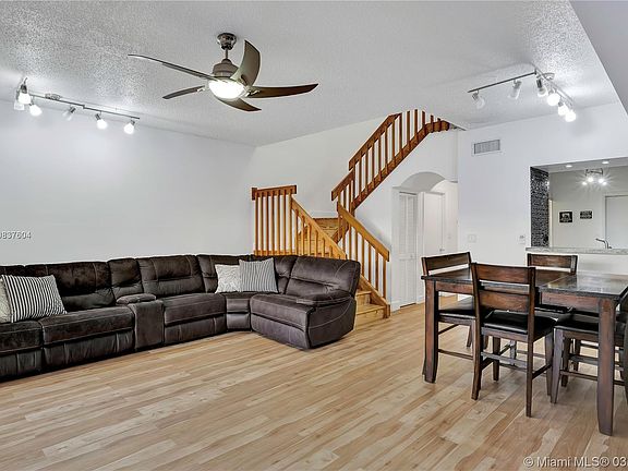 Beautiful Townhome in the desirable neighborhood of AMARETTO in Kendall, FL. Features 3 bedrooms & 2 bathrooms and 1 garage, high quality laminate floors throughout. Remodeled Kitchen with stainless steel appliances and granite countertops. Fenced and paved patio to entertain your guest, HOA includes Roof, outside insurance, common areas, pool, tennis court.