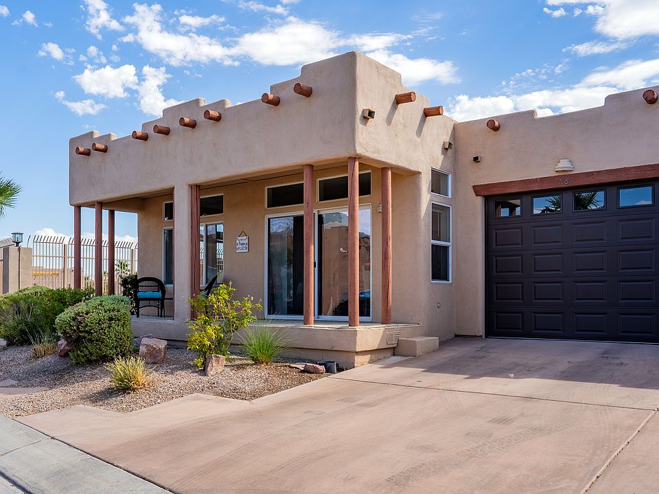 Recently remodeled 3 Bedroom / 2 Bath home with private garage. New furnishings with community pool/spa next door (pool not heated in winter). Across the street from the Colorado River! (Note: 3rd bedroom is set up as a den, with no closet or doors. Room has queen bunks)