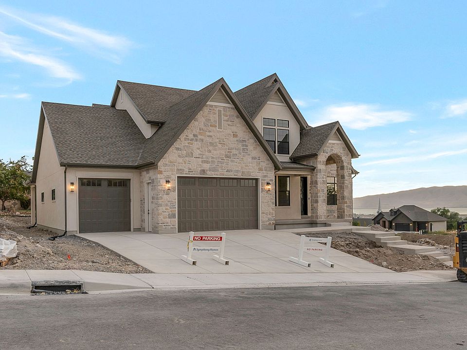 LOT#118 in Symphony Homes' Blossom Hill community. This 'Accord XL' plan is a thoughtfully designed two-story home that blends luxury and comfort with a striking two-story entry, a grand family room with soaring ceilings, custom beams, and a beautiful fireplace. Rich millwork adds warmth throughout. The kitchen features ZLINE appliances, a spacious butler's pantry, and upscale finishes. The main-floor primary suite offers a massive walk-in closet with a custom Closet Butler system. A built-in mudroom with lockers adds everyday convenience. All upstairs bedrooms have a walk-in closet. 3rd stall of garage is 40' deep with a taller door. Enjoy a covered patio and fully landscaped yard, plus a finished basement with a home gym, wet bar, cold storage, 9' foundation walls, and generous storage throughout. Style, function, and space come together in this exceptional home. Gorgeous views from the east bench! Price includes full landscaping which is expected to be completed by late October.