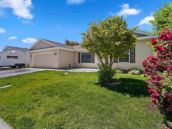 New! The landscape crew has done a great job in the backyard and sprinkler system is repaired and working well! Come see this split bedroom home that has a warm and inviting feeling as you walk through the front door. The open concept floor plan with vaulted ceilings gives a spacious feeling and invites you to kick off your shoes and relax. The kitchen offers plenty of counter space with a large corner pantry and a great flow for the chef. Sit on the shaded, covered back patio and enjoy the privacy of the fully fenced backyard with mature fruit trees and shrubs. All located on a quiet street. Welcome Home!