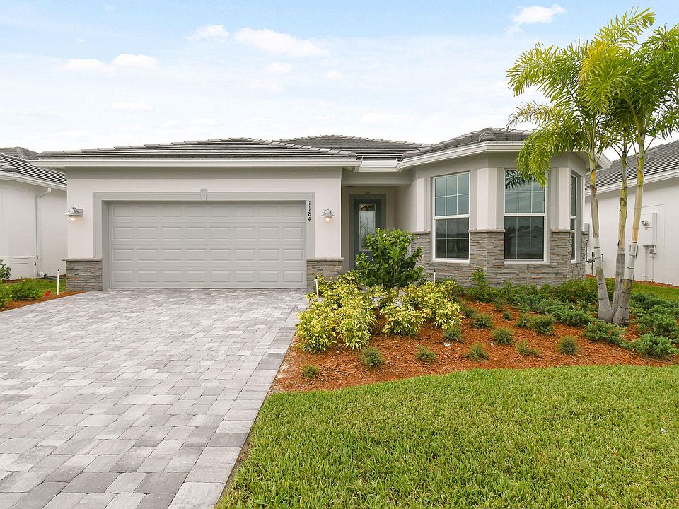 NEW CONSTRUCTION: Elegant Finishes from Front to back awaits you in this Prestige plan at Costa Pointe. Whether you are looking for a Winter getaway home or your new permanent address, the Prestige plan fits! Additional flex room is the perfect place for home office. Enjoy entertaining in your beautiful Gourmet kitchen with large island and gracious gathering room. Luxury vinyl planks and tile flooring flow seamlessly throughout every room. Open the slider doors and relax on your screened lanai with lake view.Close