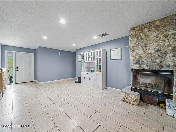Beautifully updated 3BR/2BA pool home in highly sought-after NE Palm Bay. This 1,572 SF home has many updates including a screened pool with a new 2023 enclosure, large covered patio, new storage shed, and a spacious backyard with fresh landscaping featuring blackberries, lime, lemon, pineapple, and banana trees. Major upgrades include a 2023 roof, 2024 A/C, 2022 electrical panel with generator plug, impact windows and 2022 impact garage door, plus 2023 gutters. Inside, enjoy a modern kitchen, tile floors in main living areas, vinyl in bedrooms, new interior doors and baseboards, a cozy wood-burning fireplace and a built-in library creates a book lover's paradise. Conveniently located near parks, shopping, I-95, Palm Bay Road, and L3 Harris. Move-in ready with stylish finishes and outstanding mechanical updates—perfect for easy Florida living.