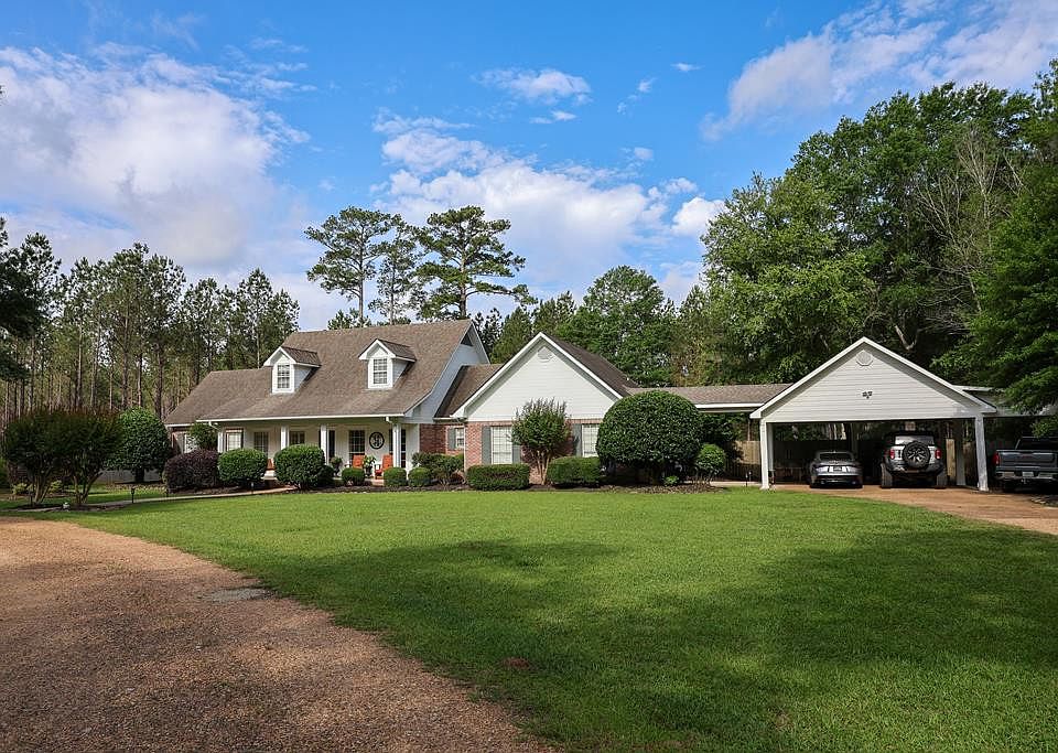 Welcome to your dream country escape! Nestled on 2 beautifully landscaped acres, this charming two-story farmhouse offers the perfect blend of space, comfort, and Southern charm. With 4 spacious bedrooms and 3.5 bathrooms, this home is thoughtfully designed for both relaxed living and easy entertaining. Step inside to find two cozy living rooms, ideal for family gatherings or movie nights. The master suite is conveniently located on the main level, while two additional bedrooms are upstairs, offering privacy and comfort. A fourth bedroom is tucked just off the second living room, perfect for guests, in-laws, or a quiet retreat. Need flexibility? You'll love the two bonus rooms that can be customized to fit your lifestyle; think home office, workout space, playroom, or extra storage. The laundry room is generously sized, offering plenty of built-in storage and functionality. Sunlight floods every corner of the home, creating a bright and airy atmosphere throughout. Outside is where this home truly shines. The in-ground swimming pool is your personal oasis, complete with a pool house and a separate shed/workshop for all your projects and hobbies. Enjoy summer cookouts on the side porch designed for grilling and entertaining, or sip your morning coffee on the welcoming front porch as you take in the peaceful surroundings. And here's a bonus you'll love, all the furniture can stay with the home, making it a truly move-in-ready opportunity! This is the farmhouse lifestyle you've been dreaming of; space, style, and serene country living just waiting for you to call it home.