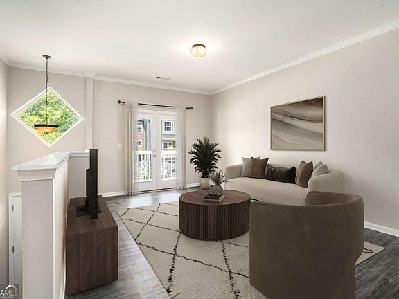 Welcome home to Liberty Park, where 3 stories of comfort and convenience await! Kick off your shoes and hang your coat at the front entry, and ascend the stairs to the main living area filled with natural light. Walk through the living room and out the French doors to the covered front balcony, perfect for rainy days. The spacious eat-in kitchen offers stainless steel appliances, granite countertops, and ample cabinet and counter space. Anchored by a stunning oversized island featuring a built-in beverage fridge, additional storage, and seating for 6! A convenient half bath completes the main level. Upstairs, you'll find 2 generous bedrooms, each with an attached bathroom and vaulted ceilings, and the laundry room in the hall in between. The primary suite highlights a roomy walk-in closet, double vanity, and relaxing soaking tub. The lower level boasts a bonus flex room with an attached half bath and a substantial walk-in closet for extra storage. Perfect as a guest suite, office, home gym, media room; the possibilities are endless. Step out the back door and imagine entertaining on the private deck, overlooking a lush green space your pets will love. Parking is a breeze with a one-car garage, driveway, and additional visitor parking right outside. This charming, gated community offers a pool, dog park, and a 24/7 gate attendant. Conveniently located in a top-rated school district with unbeatable walkability! Stroll to Westside Village and Moore's Mill shopping centers, so many restaurants, Scofflaw Brewery, and more! Just a 5-minute drive from everything fun at The Works Upper Westside. Less than a mile to the Whetstone Creek Trail - an existing 1.9-mile pathway that will become a part of the Silver Comet Connector to the Beltline. Easy access to I-75/85, I-285, The Battery, Downtown Atlanta, the airport, and much, much more! This home qualifies for down payment assistance for those who are eligible!