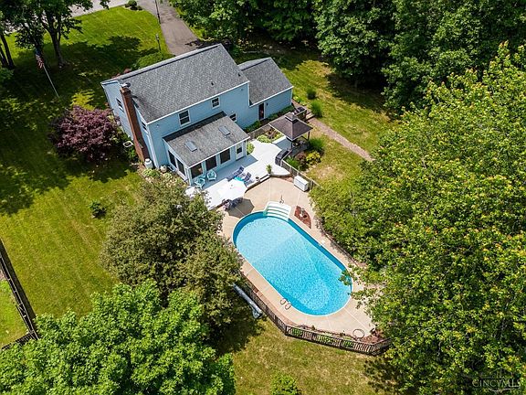 Staycation Year Round At This Immaculate Maintained Home On Almost Two Acres! Entertainers Paradise Including In-Ground Swimming Pool, Pond w/ Dock, Almost 2 Acres Of Flat Usable Yard Lined With Trees For Extra Privacy! Gleaming Hardwood Floors On Most Of Main Level w/ Corian Kitchen, Tile Backsplash & SS Appliances Opens Up To Family Room w/ Brick WBFP with Propane Start! Formal Living & Dining Rooms w/ Crown Molding & Natural Woodwork. Massive Screened In Porch Off Family Room/Kitchen w/ Skylights Overlooking Your Private Swimming Pool & Lush Grounds! Second Floor Features 4 Large Bedrooms & 2 Full Baths Including Primary Suite w/ Custom Walk-In Closet, Jetted Tub & Hardwood Flooring. Finished Lower Level Rec Room, Study & Loads Of Storage. Attached 2 Car Garage & Shed w/ New Metal Roof. HVAC 2022, Roof & Windows 10-12 Years Old. Updated Tile In Primary Bath. ORIGINAL OWNERS!