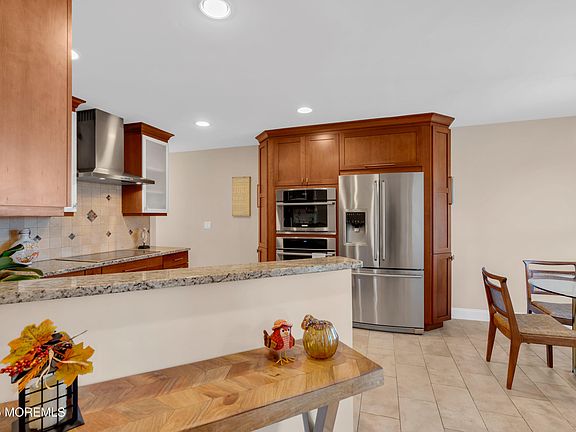 Absolutely beautiful and fully renovated townhouse located directly on the Shrewsbury River with stunning riverfront and ocean views! From the moment you arrive, you'll feel like you're on vacation every day. This stunning home features an updated kitchen with granite countertops, tile backsplash, stainless steel appliance package including wall oven and cooktop, and a spacious pantry. The eat-in kitchen flows seamlessly into the dining room/living room combination, complete with gleaming hardwood floors and a cozy gas brick fireplace.