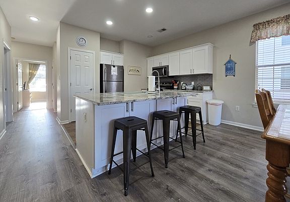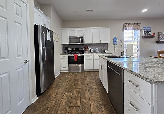 1st floor 3 bed 2 bath condo with outside patio within a family-friendly neighborhood located in the River Oaks area where tenants will be able can easily access main highways 501 and 17 to get to anywhere in the Myrtle Beach area. The master bedroom has a king bed and ensuite full bath, the second bedroom has 2 twin beds, and the third bedroom has a double bed plus a full hall bath. The kitchen has updated, stainless steel appliances and fully equipped with cooking/eating essentials, a washer/dryer. Tenants will have access to community amenities including outdoor pools, hot tub, grill stations, and a picnic area.
