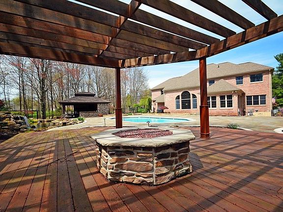 Welcome to this elegant and classic brick home with in ground pool located in Green in the Fox Ridge Estates. As you walk to the entry of the home you will notice the beautiful stamped color concrete leading to a large front porch. Enter through the double doors & you are welcomed by a large 2 story foyer. Office with built in and large window view. Enter the great room & you are just dazzled by the 2 story windows, the view of the majestic back yard including the in ground swimming pool. A large cherry kitchen with granite and Viking appliances with gas range. Kitchen opens to a large dinette and full four season sun room. The kitchen also flows with a European dining room perfect for entertaining. There is also a 1st floor laundry with cabinets & sink. 2nd floor includes 4 large bedrooms with plenty of storage and large master suite with double high vanities and walk in closet. Two of the 2nd floor bedrooms have walk in closets and Jack and Jill bathroom. Finished lower level with large recreation room with fireplace, full wet bar, billiards room and a wine room, exercise room with sauna & storage. FABULOUS, large in ground swimming pool that goes from 3ft, to 5ft, to 8ft. surrounded by decorative concrete, majestic landscaping and a large pool house. Pool house has recreation area and bar with bathroom and changing room. There is an outside fire pit, large patio and private setting. Oversized 3 car garage, generator, sprinkler system, dual staircase, and more!!!