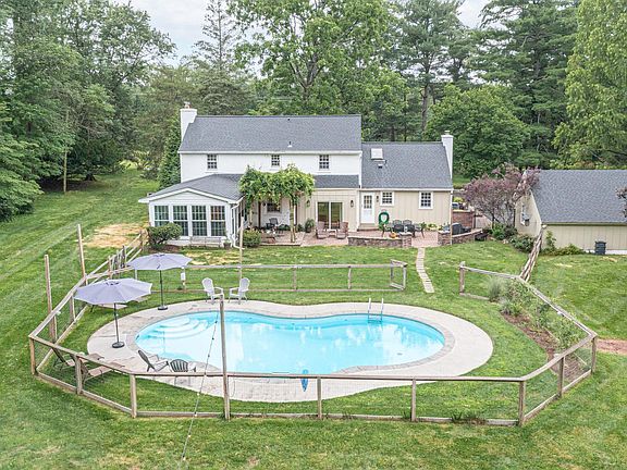 1.33 acres of beautiful, private space upon which sits this elegant, stone front, spacious and immaculately maintained, custom home. Welcome to 1184 Shannon Lane with fabulous curb appeal and NEW ROOF 6/25. The large, covered front porch is a perfect spot to relax and enjoy the views over the surrounding pastoral landscape. Once inside, the elegant foyer spills directly into the living room. Running the entire depth of the home, this space enjoys amazing natural light all day from both front yard facing windows and a slider door to the backyard at the opposite end. High ceilings, a beautiful exposed beam and parquet wood floor add character and charm while the sheer size of this space makes a great first impression and allows for countless furniture configurations and designs. Through the living room to the left is a large yet cozy family room. Here you'll find one of two fireplaces on the main floor, a wet bar replete with refrigerator and beverage refrig, and substantial counter space. Multiple windows allow both great light and views over the front of the property and the scenic rolling hills of Upper Makefield. This room is also connected to one of the home's many great features, a first floor bedroom and connected full bathroom with stall shower. Served by a separate entrance from the backyard, this bed/bath can be closed off from the rest of the main floor. Additionally, If the homeowner should choose, this wing of the home including the family room with a 2nd front door can be closed to create a sizable, private suite. An in- law suite or first floor primary suite are all possibilities for this section of the home. To the right of the living room and foyer, the formal dining room and fabulous kitchen are totally inviting. The kitchen is updated and gorgeous with huge granite countertop prep space along with an abundance of stylish white cabinetry, 2 dishwashers, a second prep sink and a sizable peninsula island/breakfast bar. This heart of the home kitchen is an invitation for group meal prep and is fully open to the dining and sitting area. The gorgeous stone, floor to ceiling fireplace with wood stove insert and windows facing 3 directions call all to come together. The dining room also gives access into another unique and wonderful feature of this home - the gorgeous sunroom. Oriented to provide views of the backyard and woods beyond, with it’s koi pond, live garden and 3 fully windowed walls, this is a unique and truly special part of the home that is sure to be enjoyed. Upstairs the homeowner will love the private and luxurious primary suite. The specious main room branches off into an elegant and private bathroom along with a giant closet and wonderfully convenient laundry room. A beautifully updated hall bathroom serves two more big bedrooms that complete the upper level of the home. Rounding out the interior is a great, partially finished basement. The high ceiling, and expansive footprint beckon the homeowner to create the space to serve their needs as this is clean, dry and fully functional space. Ample unfinished storage and work space was also preserved . Set amidst complete privacy, step out to the beautiful huge patio overlooking a fenced play or pet yard, enroute to the newer, separately fenced heated salt-water pool. The charming storage shed and oversized, detached two car garage have your vehicle and outdoor belongings storage needs handled. NEW ROOF 6/25. This gorgeous setting calls to all who seek the beauty of mature trees and unspoiled nature. For all of its beauty, space and privacy, one of the many things to love about 1184 Shannon Lane is the convenient location. No more than 15 minutes from I-295 and the popular towns of New Hope, Yardley and Newtown and served by the reputable and highly coveted Council Rock School District, this home is totally convenient and close to all that makes Lower Bucks County such a popular and wonderful place to live.