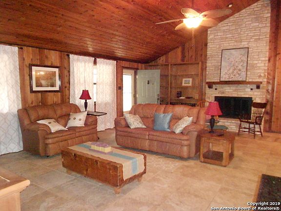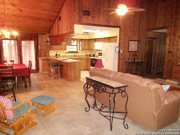 Wonderful serene single story!! Country living, lots of mature trees with beautiful view from covered screened in porch. Covered front porch is great for enjoying the wild life. Plenty of deer! Washer, dryer and refrigerator included! Over sized 2 car garage with work bench and separate room with sink. Close to Guadalupe River access. Easy access to Hwy 281. Owner prefers to rent furnished but will remove if desired.