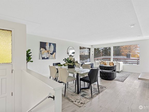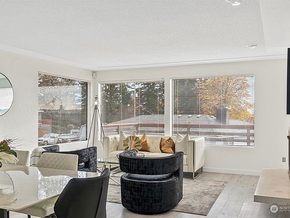 Discover a stunning mid-century modern home on a serene cul-de-sac, boasting panoramic views of Seattle and the mountains. Freshly remodeled, this 4-bed, 2.5-bath residence features an open layout with large windows framing the picturesque vista. Enjoy a spacious deck, four-season porch, and covered patio seamlessly blending indoor and outdoor living. With a gourmet kitchen, expansive yard, and luxurious primary suite, this home offers an elegant, comfortable retreat in an idyllic setting. We can't wait for you to make this beautiful home yours.