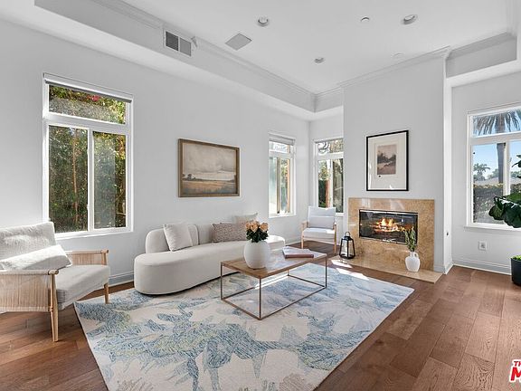 Luxury contemporary Mar Vista home in a quiet, gated community awaits you. This exquisite 4-bedroom, 3.5-bathroom residence, spanning approximately 2,900 square feet, blends architectural elegance, spacious design, and refined comfort. Perfectly situated on a private cul-de-sac, this home harmonizes Mediterranean charm with timeless California sophistication. A formal entryway leads to a dramatic two-story atrium that fills the home with natural light and connects each space with effortless flow. The formal living room, complete with an elegant fireplace, opens to the dining room, creating a perfect setting for entertaining or intimate gatherings. A graceful walkway connects to the family room, powder room, and designer kitchen, bringing warmth and function to the heart of the home. The family room features a second fireplace, built-in cabinetry, crown molding, recessed lighting, and a wet bar, all complemented by abundant natural light and a theater-quality surround sound system. The gourmet kitchen is a chef's dream, showcasing a massive granite island with built-in storage, breakfast bar, plentiful cabinetry, and stainless-steel appliances, including dual ovens, a microwave, refrigerator, trash compactor, and wine cooler. Skylights and vertical windows flood the space with sunlight, while a breakfast area offers tranquil views of the lush yard. A spectacular wood staircase leads to the second floor. The lavish primary suite features vaulted ceilings, a third fireplace, a spacious walk-in closet, a private balcony with tree and neighborhood views, and a spa-inspired en-suite bath with a jetted soaking tub. A sunny loft area provides a perfect retreat or reading nook. The home also includes a junior suite with its own sitting area and balcony, as well as two additional bedrooms that can serve as guest rooms, a gym, office, or creative spaces. Additional features include a dedicated laundry room with a utility sink, direct access to a private two-car garage and driveway parking, central air conditioning and heating, and separate grassy yardsone fenced for complemented by a rock garden and a serene Zen path. Freshly painted interiors, plantation shutters throughout, and premium finishes elevate every detail. The community offers low HOA dues ($233/month) covering weekly landscaping, maintenance, and gate security. Nearby are pet-friendly walking streets, restaurants of all cuisines, museums, parks, golf, and shopping. Conveniently close to the 405 and 10 Freeways, UCLA, Santa Monica, Venice Beach, and Beverly Hills, this home provides easy access to the best of Los Angeles. Refined, radiant, and move-in ready, this gorgeous Mar Vista estate offers an unparalleled lifestyle of elegance, comfort, and architectural grace truly designed for your most discerning buyer.