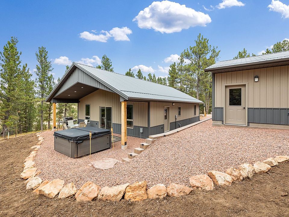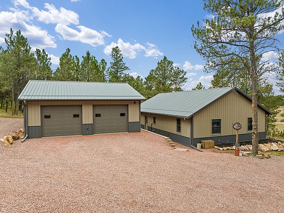 New Construction! Open floorplan home nestled in the pines of the Black Hills. The kitchen has custom built cabinets with soft-close features and knotty alder wood, a dropin quartz sink and did you notice the custom live-edge island top made of oak & walnut? This just accentuates the amazing large kitchen! Cook and chat with company in the open concept design. An extention of the living room is the outdoor living space that features a hot tub for those cool nights and star gazing. Maintenance free large shower in the bathroom/laundry room. Builder designed large windows and patio door to let in the natural sunlight and enjoy the natural beauty views. Don't forget to look up...there's a beautiful tongue and groove ceiling just fitting for a Black Hills home. Home is heated with in-floor heat throughout the house and is super efficent, cost-effective and wonderful on your tootsies! Fully-insulated exterior/interior walls and attic. The exterior roof and walls are textured steel on both the house and garage and both have seemless gutters. The large garage (30x32) is fully insulated with concrete floor, french floor drain, LED lights and plumbed for gas heater. You are just a 20 minute drive from Custer/Hot Springs. There is a lot of room if want to add a second shop. The acreage is treed and very private and landscaped. There's a full RV site just in front of the home with 30 amp electric. Listed with Andrea Ronning, Aspen+Pine Realty.