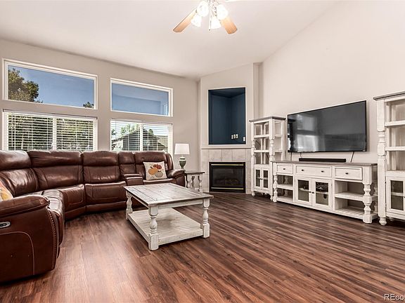 *Open House Sat 10/4 from 12:00 - 3:00 PM*Welcome to Skylake Ranch, where comfort meets convenience in this bright two-story home. From the moment you arrive, the charming front porch and inviting curb appeal set the tone for what’s inside.Step into a light-filled interior with soaring ceilings and a cozy gas fireplace, creating a space that feels both open and warm. The living room’s vaulted ceiling adds to the airy vibe—perfect for quiet evenings or entertaining guests.At the heart of the home, the impressive eat-in kitchen is designed for everyday living and memorable gatherings. Upgraded countertops, stainless steel appliances, abundant cabinetry, recessed lighting, and a stylish subway tile backsplash frame the space beautifully. A built-in coffee station starts your mornings right, while the island with breakfast bar keeps conversations flowing.Need flexibility? A main-level bedroom with French doors easily doubles as a guest retreat or private home office. Upstairs, the spacious primary suite offers a peaceful escape with a walk-in closet, an electronic blackout shade, and an ensuite featuring dual sinks, a soaking tub, and a separate shower. The unfinished basement—with rough-in plumbing and partial framing—offers a head start toward your vision, whether it’s a home gym, media room, or creative studio. Outside, the backyard is made for play and relaxation with an open patio, playset, and handy storage shed. A walking trail just steps from the front door invites you to enjoy the outdoors.Additional perks include a 5.7 kW solar system for energy savings, plus a prime location near schools, parks, shopping, dining, and quick highway access.