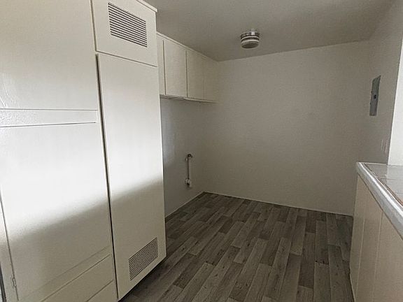 -Newly installed vinyl plank flooring in kitchen and tile in bathroom