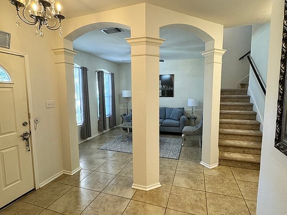 - Three Living Area, Liv/Din Combo, Breakfast Bar, Pantry, Master Downstairs, Ceiling Fan(s), Chandelier, Solid Counter Tops