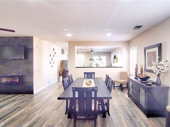 This home offers a spacious open floor plan with plantation shutters and hardwood floors. The central open area features an electric fireplace with a wall-mounted TV set up for easy viewing. From there you will be allured into this luxurious kitchen with oversized granite countertops and ample cherry wood cabinets. Maytag appliances included. Hand-crafted cherry barn door takes you to a separate laundry room with high-efficiency W/D.