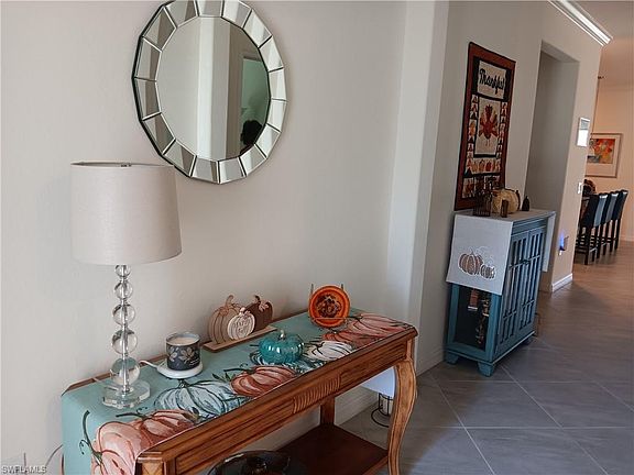 "Fall in love" with this beautifully maintained Trevi home, now enhanced for your viewing pleasure with festive "fall" (autumn) decor! Better than a model home, this house reflects the comfort and pride of homeowners who have lovingly cared for it. It offers 3 BRs plus a bonus room that can be used as office, den or 4th BR plus 3 full baths so there's plenty of room for everyone to enjoy "their own space." And when it's time to get together, you can't beat the extended lanai (custom-built in 2023) that was skillfully engineered to prevent water/mold from puddling on the pavers! Other attractive upgrades include: complete ADT, Ring, and MyQ garage security systems, custom remote-control window blinds, new DW (2024), added storage via garage hanging storage racks & laundry room cabinets. With its highly desirable lakefront location, this wonderful home is ready to bid you "welcome" as your new vacation or year-round home!