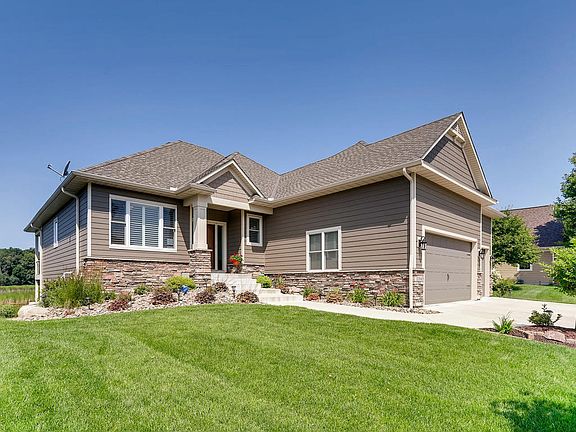 Stunning detached Rambler situated on a private lot overlooking a pond. You will love the open layout this Gorham built home provides. The kitchen is huge with a large granite center island that is perfect for entertaining or everyday living. The Alder cabinetry is beautiful. The living room also features custom built-in cabinets and 11ft ceilings. A covered porch is a perfect spot to end the day and watch wildlife in the pond. The walkout lower level is large enough for your biggest gatherings. An awesome wet bar and 2nd fireplace are in this family room. Two additional bedrooms and an office area are also located on the lower level. The man cave garage is fully finished, heated, and has floor drains. The 3rd stall is 28 ft deep and has built in cabinets. No expense was spared-Anderson windows, hardie board siding, and custom finishes. The lifestyle allows you to have fun and enjoy the privacy of a single family home and let the HOA do the yard work.