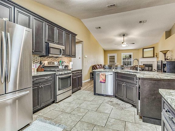 Seller has an Assumable loan for qualified buyers at an interest rate of 2.25%. Four bedroom, three bath Brick home plus a Bonus room that can be used as an office/playroom and a separate Dining room. Located in an established neighborhood and at the end of a cul-de-sac with a fenced in back yard. Roof replaced in 2020, Water Heater 2021, AC 2015. This Split Floor plan has a Tiled foyer that leads to an Open floor plan and Spacious great room that features hardwood flooring, vaulted ceilings and Gas fireplace with a beautiful mantle and tile hearth. The open kitchen has tons of cabinet space, a tiled backsplash, and a gas range. The kitchen is complimented by Granite countertops and Stainless appliances. The Master bedroom has two bathrooms. Each bathroom has a vanity, toilet, and walk-in closet. One bathroom offers a Soaking tub and the other a walk-in shower. Across the house, there is two bedrooms and a guest bath. The fourth bedroom has double doors located near the bonus room. The laundry room with extra storage leads from the house to the 2-car garage. Off the back of the house, a patio area surrounded by a large backyard with a privacy fence. Home includes a transferable Home Warranty.